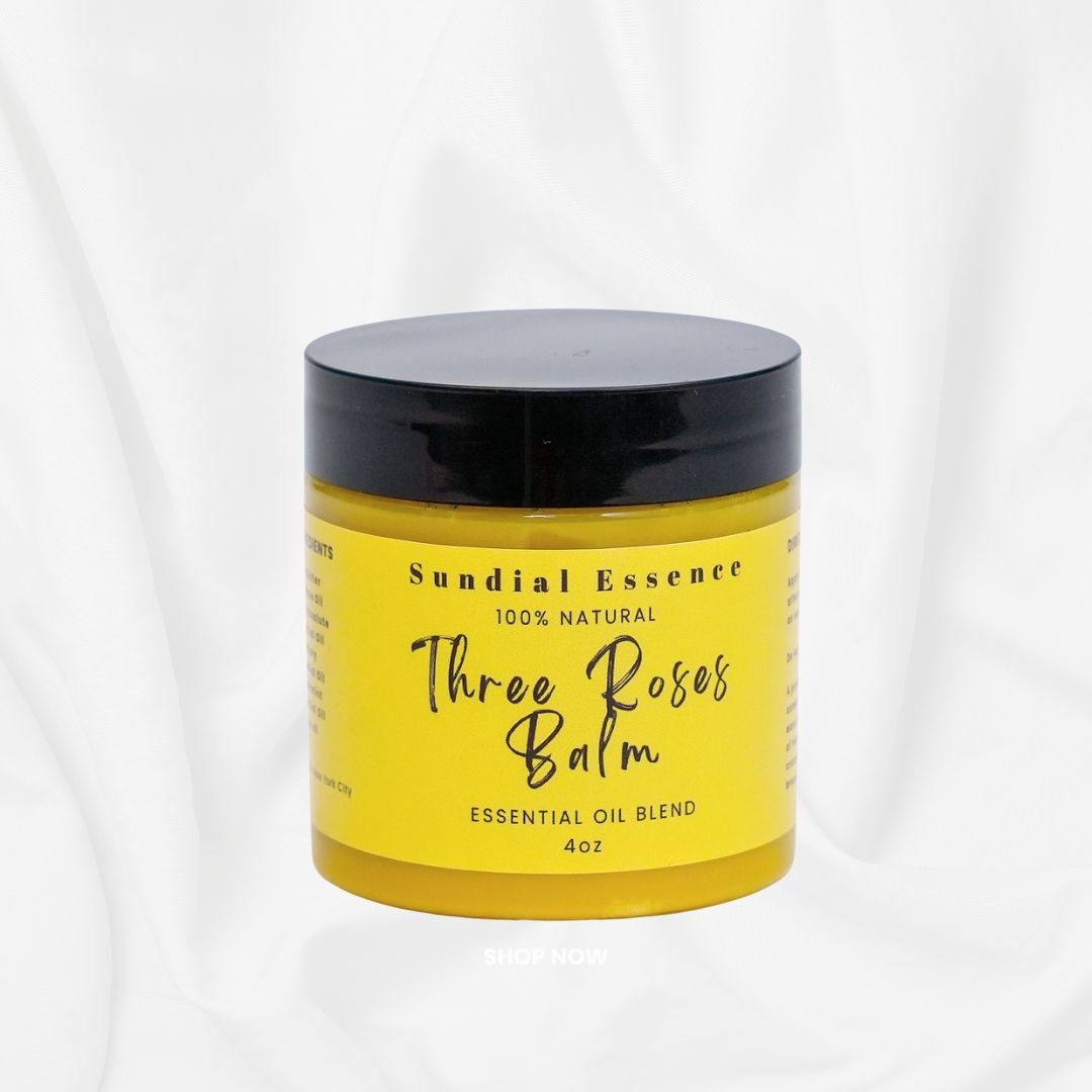 Immerse yourself in the delicate blend of all natural ingredients and essential oils like Rosemary and Peppermint. Experience the power of nature's harmony with our meticulously curated Three Roses balm created to ease stress and promote relaxation.